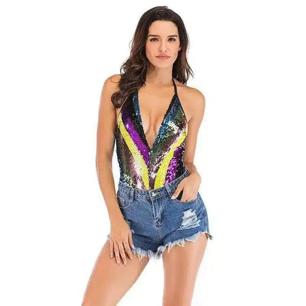 Bodysuit dos nu à paillettes et short en jean déchiré