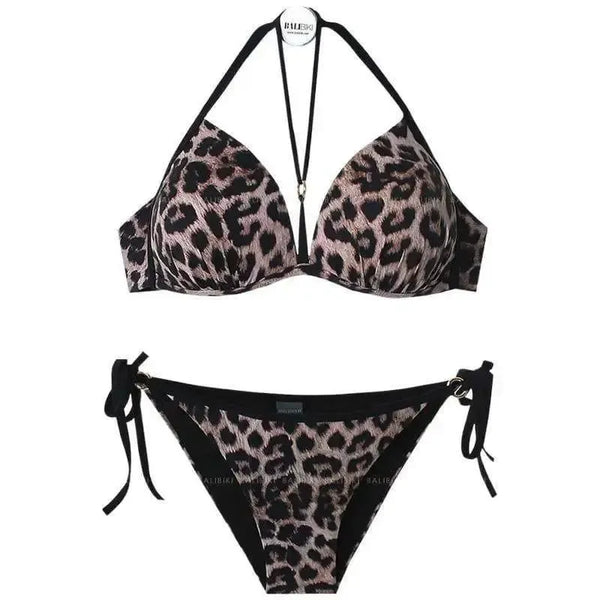 Description du produit : Bikini léopard trois points petites poitrines froncées