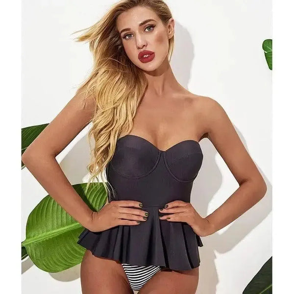 Description du produit : Maillot de bain femme triangle tube top jupe plissée fendue