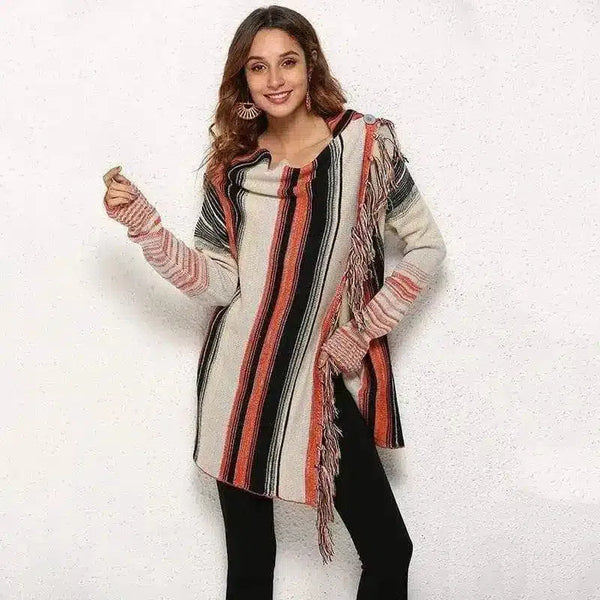 Cardigan à capuche rayé pour femmes avec franges