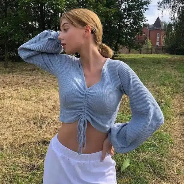 Light Blue Ruched Crop Top - Fashionable and Comfortable