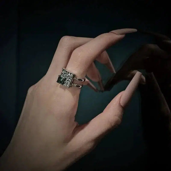 Vintage Silver Square Dark Green Diamond S925 Sterling