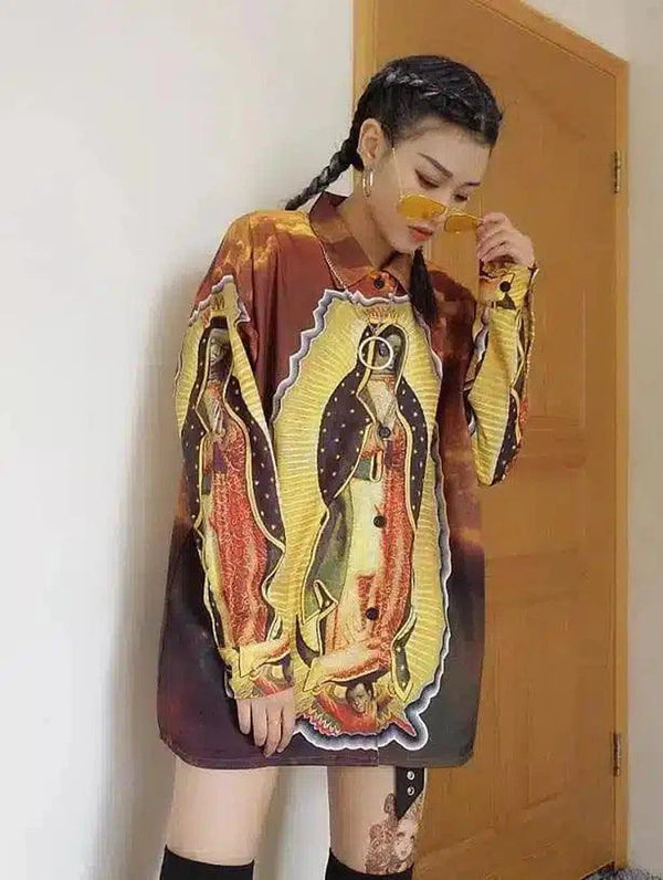 Chemise Harajuku à imprimé numérique de la Vierge Marie