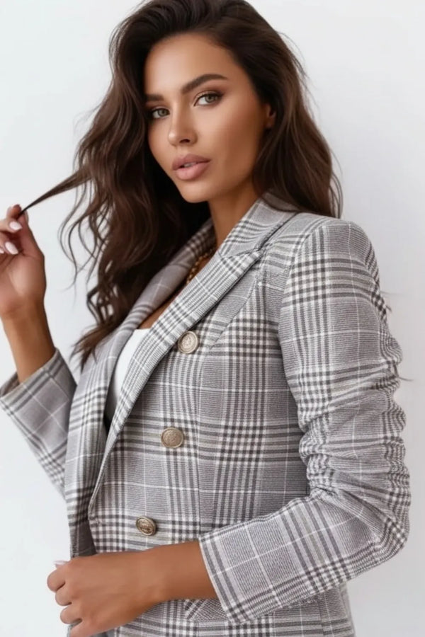 Womens Autumn Top Loose Long Sleeve Plaid Blazer