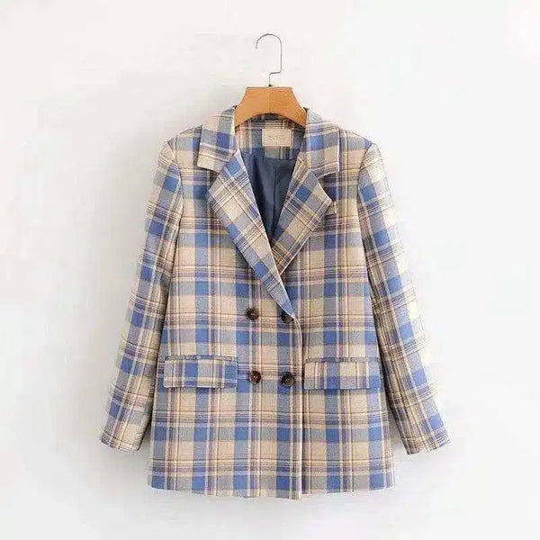 - Blazer classique à carreaux : Rehaussez votre garde-robe avec ce blazer à carreaux intemporel, une pièce polyvalente qui ajoute de la sophistication aux ensembles formels et décontractés.