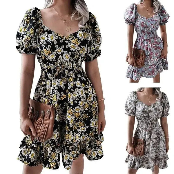 Robe à manches courtes à volants pour femmes