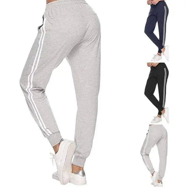 Leggings de sport à deux barres pour femmes, bordés de blanc