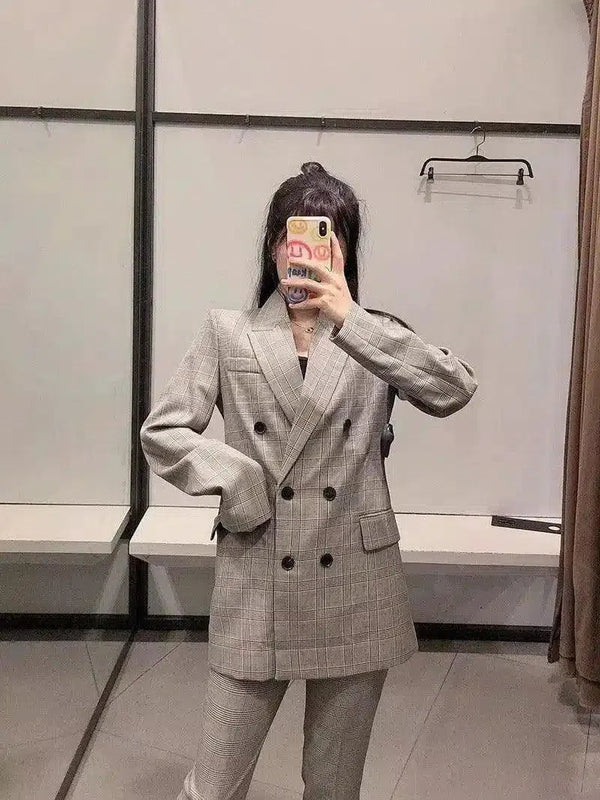 - Forme ou Stretch : Coupe structurée avec un design à double boutonnage
