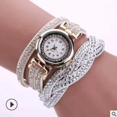 Montre de mode, montre de mode pour dames, montre de mode à remontage par la ceinture en pu torsadé de diamants