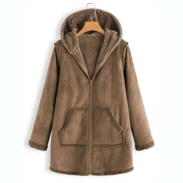 Hiver Pocket Warm Plush Hooded Coat - Description du produit:.
