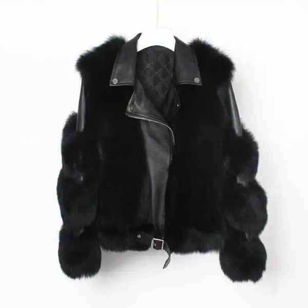 Description du produit : Manteau de renard moto en vraie fourrure d'herbe