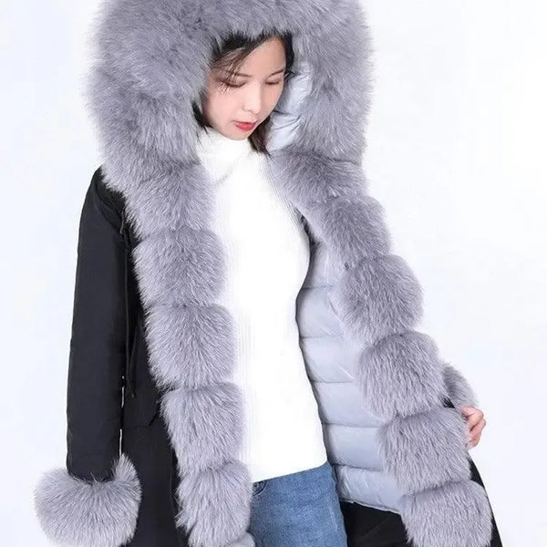 Manteau Fourrure Avec Patte De Doublure Intérieure Détachable