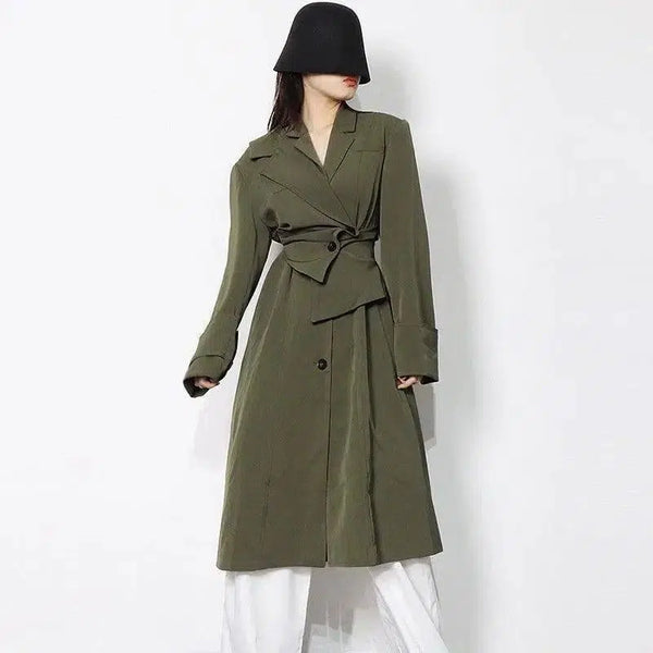 Description du produit : Manteau long à panneaux irréguliers et à revers simple