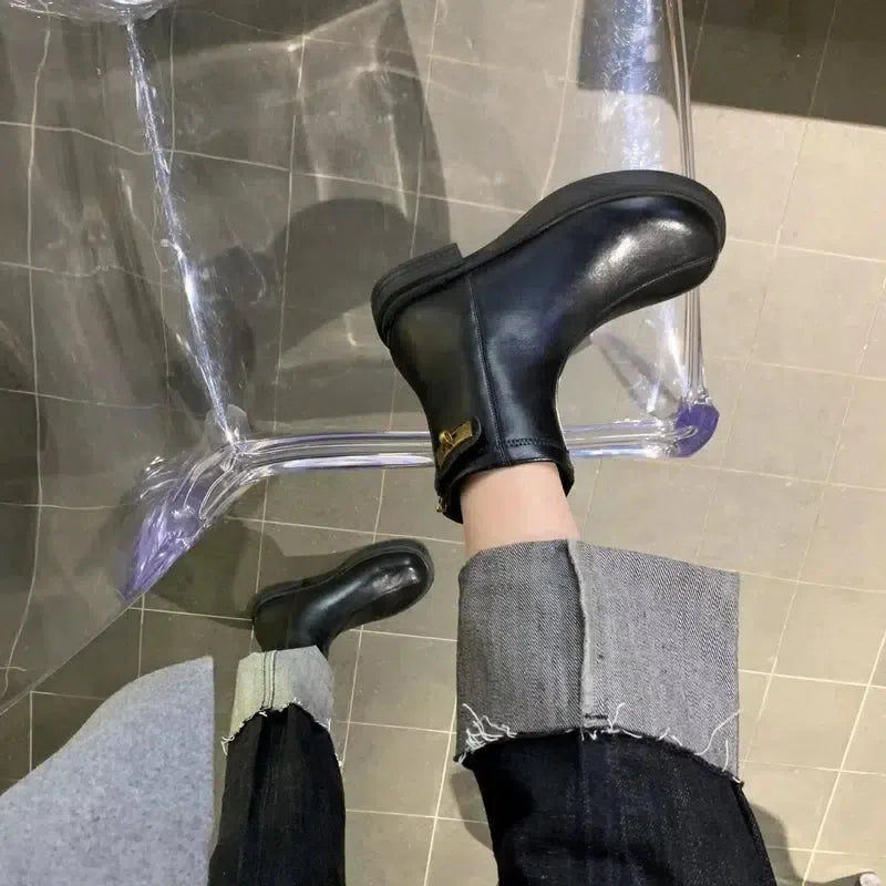 Martin Boots Women Plus Velvet Thick British Style Round Toe