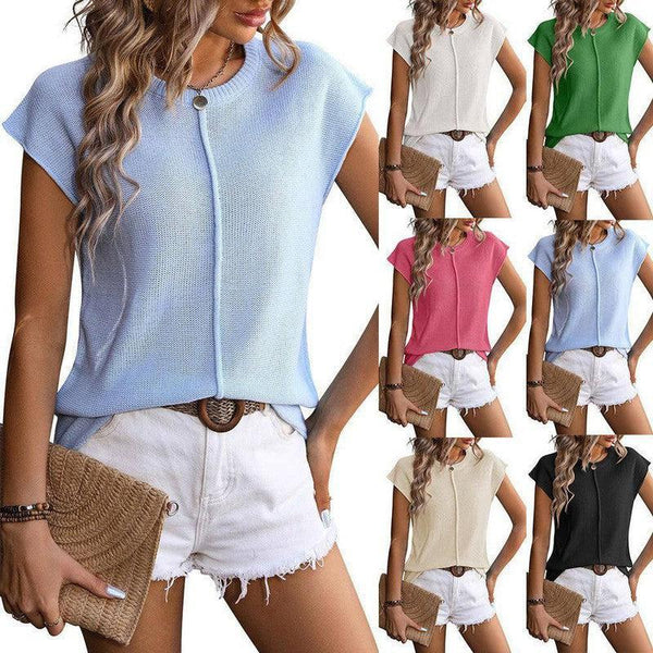New Knitted Round Neck Short-sleeve Top Summer Casual Loose