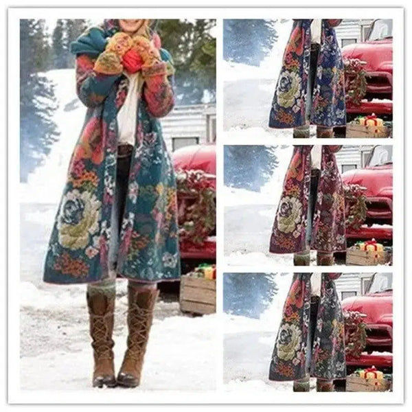 Description du produit : Femme style cour imprimé mi-longueur à capuchon épais