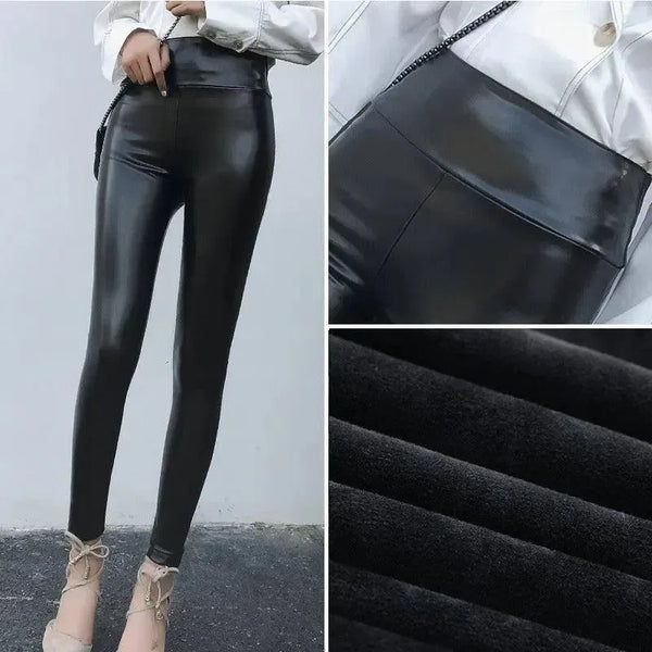 Pantalon en cuir épais taille haute pour femmes en cuir PU