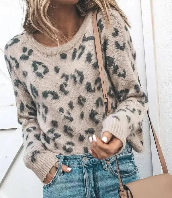 Chandail Chandail en tricot Chandail imprimé léopard Chandail pour femmes