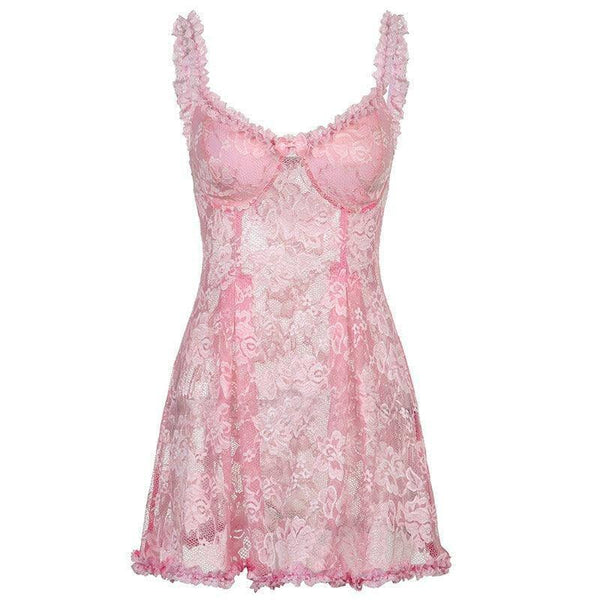 Description du produit : Robe camisole en dentelle perspective avec col en V
