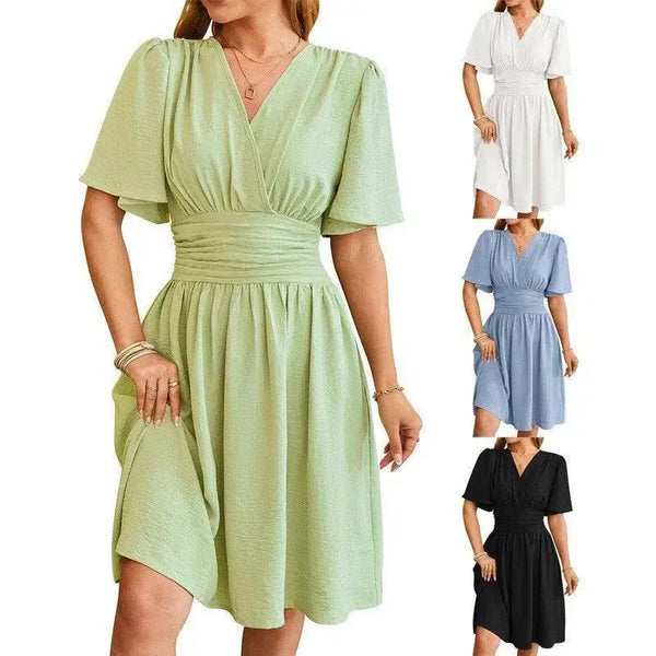 Robe à manches courtes et col en V Robe à manches cloche Fashion Summer Womens Clothing