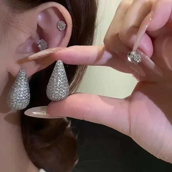 Bijoux de mode Boucles d'oreilles dôme pour femmes en acier inoxydable brillant Boucles d'oreilles en forme de goutte incrustée de zircon Boucles d'oreilles pour femmes