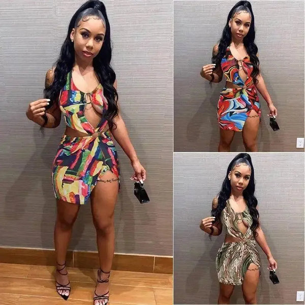 Bikini fendu imprimé pour femmes en maillot de bain tricoté