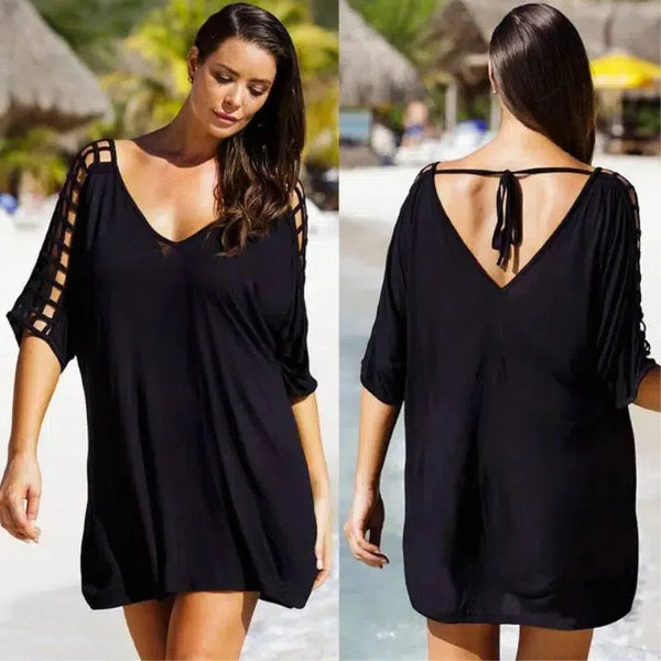 Summer Plus Size M to 3XL Cover Up Women Swimwear Beach Blouses Women Bikini Beach Cover-Up Black Dress