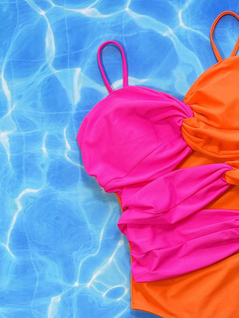 Two-Tone Twisted Cutout One-Piece Swimsuit