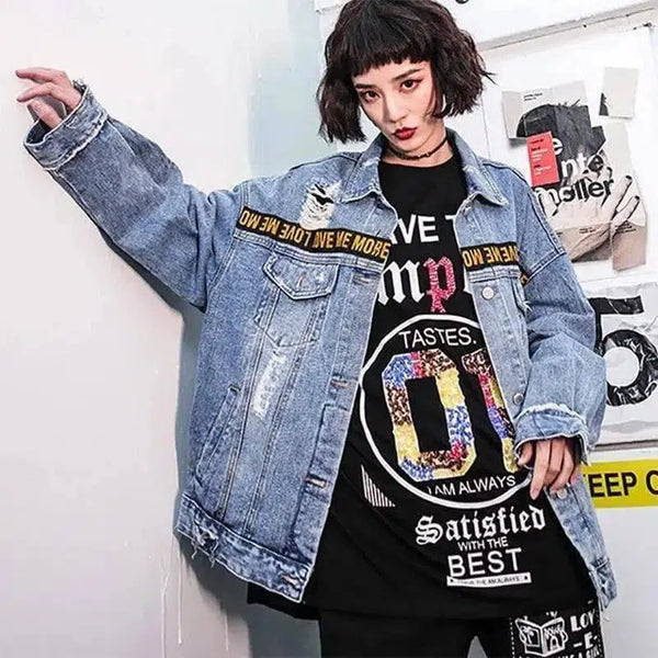 - Type de vêtement:Veste en denim surdimensionnée Longueur des manches: Manches longues