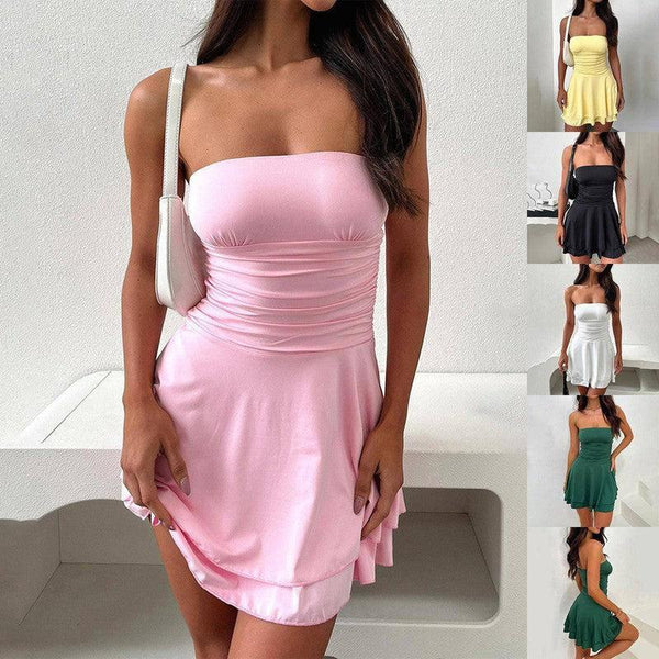 Robe courte tubulaire plissée d'été Y2K, robes serrées